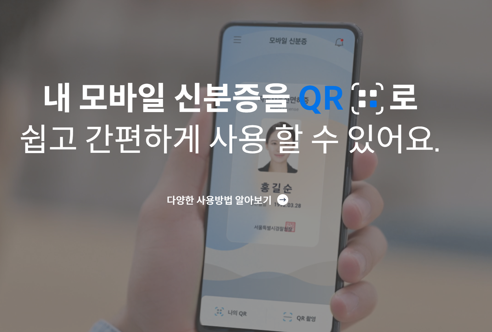본 서비스를 통해 다양한 상황에서 활용할 수 있게 되었습니다. 일상생활에서는 식당이나 편의점 등에서 성인여부 확인, 비행기 탑승 시 신분확인 등이 해당됩니다. 지갑 속에 항상 신분증 챙기시느라 번거로우 셨을 텐데요. 지금부터는 휴대폰만 챙시길 바랍니다.